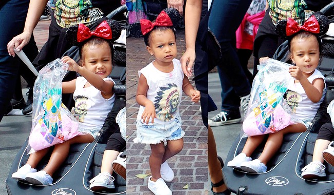 Kim Kardashian and family had another Disneyland day. This time was in celebration for Penelope’s 3rd birthday. Kim and North matched in Yeezus shirts. Penelope and her mommy Kourtney wore matching Tinkerbell inspired costumes. There was no show from daddy Scott Disick. He did post a birthday shoutout to his baby girl though.