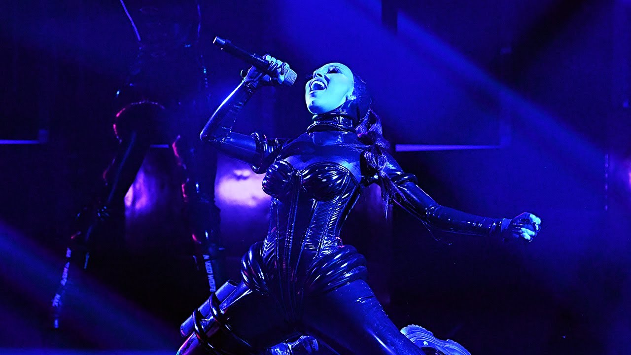 Doja Cat hit the stage with an outstanding performance of her hit single “Say So”. She was dressed in an all latex outfit, with a robotic futuristic touch. There were blue laser lights all over the stage which made her performance even more amazing. Her dance moves were phenomenal and were in sync with her dancers.