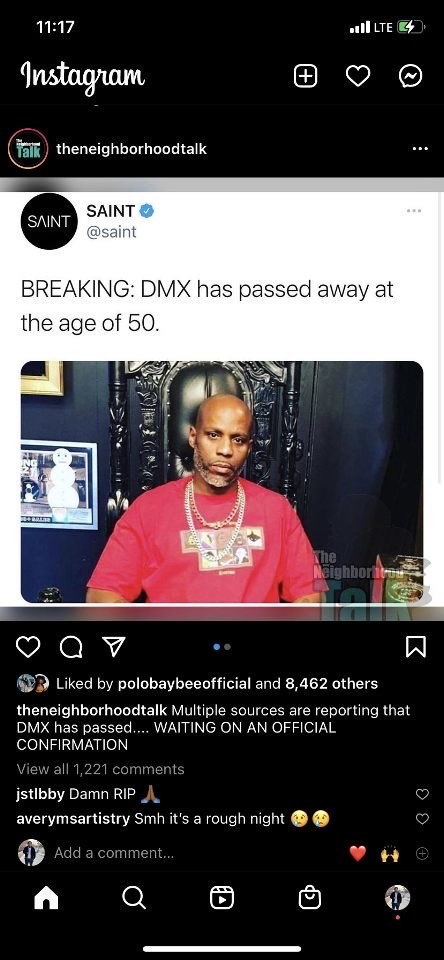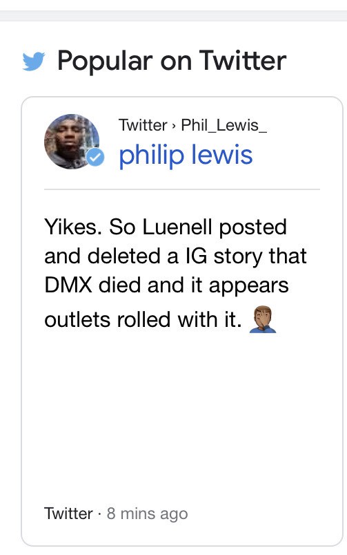 Upon more research, we discovered the discrepancy made with the false reports of Mr. Simmons’s death. It appears that DMX’s long-time friend, comedian Luenell posted and quickly deleted her IG story claiming her friend was dead. Since then, other hip hop blogger’s deleted their “RIP DMX” posts as well.