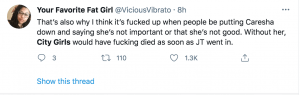 This is not the first time that the City Girls have found themselves having to answer to their fans about their behavior. JT in particular has been in a couple of hot seats. She has gotten into it with a couple of celebrities such as Erykah Badu, whom she called a “bald head miserable ass B**ch”. JT also came for Lil Wayne’s daughter Reginae calling her a “corny hoe”. She said that T.I.’s wife Tiny wasn’t pretty. She tweeted once that she wanted R. Kelly to get raped by singer R. Kelly who is now awaiting his sentence for racketeering and sex trafficking. She almost goth the group cancelled when some of her problematic tweets resurfaced were deemed Homophobic and Anti-Haitian.