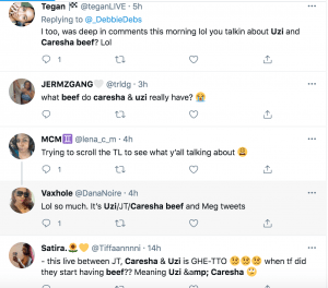 Since last night’s Instagram live, social media has been abuzz, particularly the exchange of words between Yung Miami and Uzi. Many users did not like the way Uzi was talking to Yung Miami. Things seemed to escalate when JT tried to intervene, only to have Uzi bark at her to stay quiet. There’s been some speculation about growing tension brewing between Uzi and Yung Miami. This most recent IG live wasn’t the first time either of them got into it. Check it out.