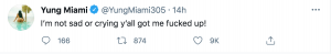 “Yes, I cheered up until high school, I know football very well!!!!!!”, she responded. This led to another person telling Yung Miami to make better music.