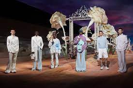 The “Cactus Jack Dior” collection is a set of men’s wear that is coming out in summer 2022. The colors range from a bright green, soft pink, and plenty of shades of white, something Dior calls “sun bleached.” Beyond those standout designs, there are also plenty of sleek, fully black outfits; one of which Travis wears at the runway debut.